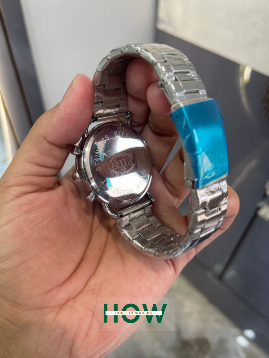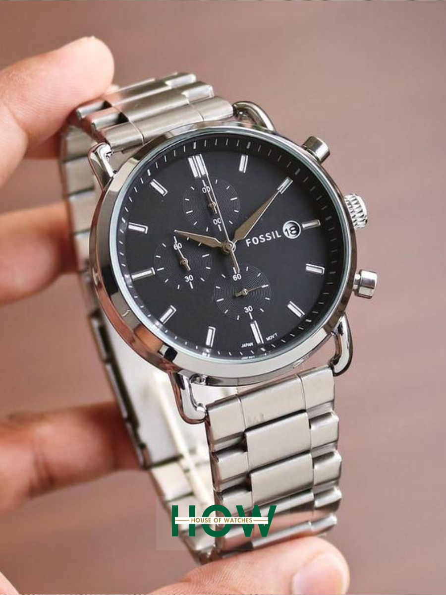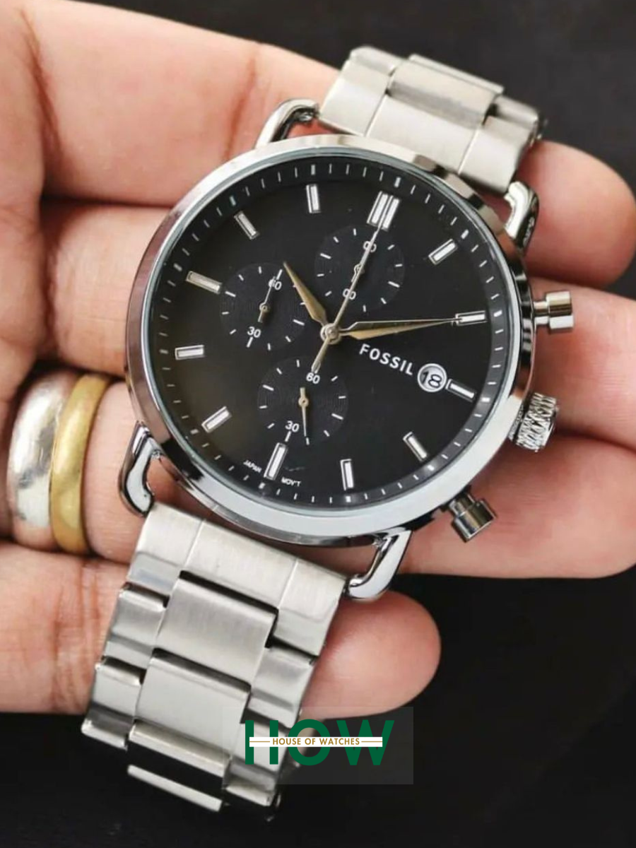 Fossil Silver Chronograph Watch – Black Dial Elegant Modern Edition