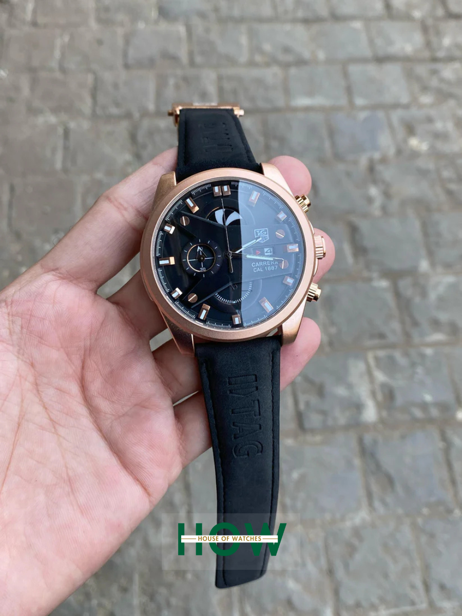 CR7 Black Rose Gold Case Leather Strap Men’s Watch – Premium Edition