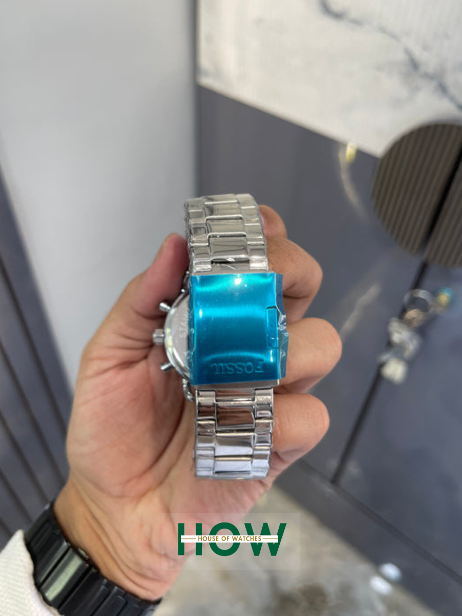 Fossil Silver Chronograph Watch – Blue Dial High Luxury Edition