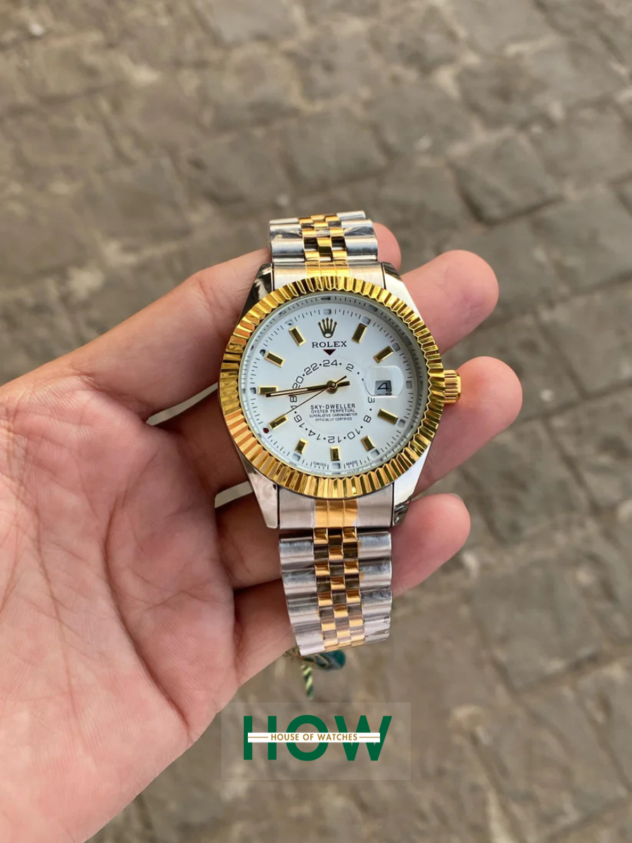 Rolex Sky-Dweller Gold White Analog Dial Dual Tone Men’s Watch – Luxury Edition